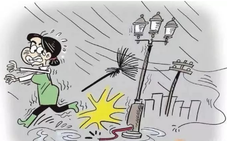 大風(fēng)一旦將樹枝刮斷或?qū)V告牌刮倒,就很可能將緊靠的電線砸斷或搭在電線上。人體一旦接觸那些被砸斷的電線以及被淋濕的樹木或金屬廣告牌,是十分危險的。路燈桿經(jīng)水漫過電線桿接線處也可能漏電,請盡量不要靠近。